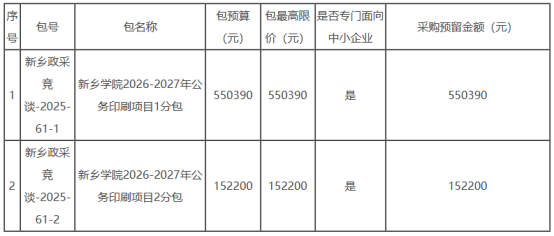 新乡学院2026-2027年公务印刷项目招标项目的潜在投标人应在新乡市公共资源交易中心网站(https://ggzy.xinxiang.gov.cn)获取招标文件,并于2026年01月20日09时00分(北京时间)前递交响应文件。