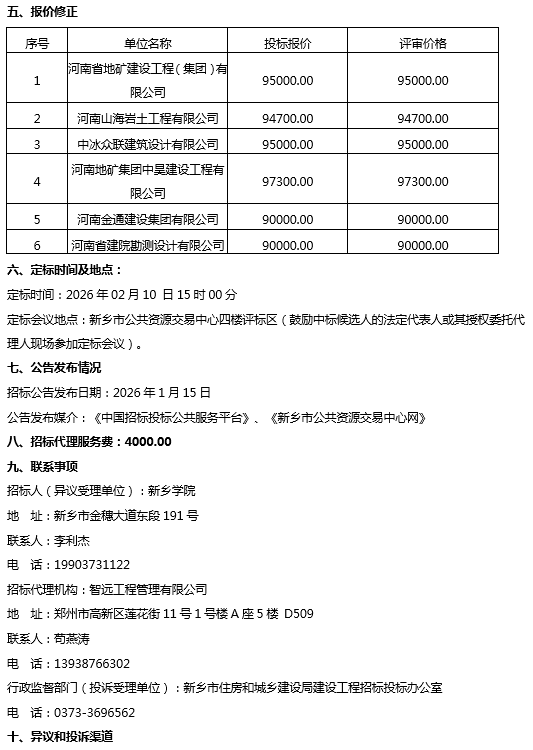新乡学院东校区新建学生宿舍楼项目地质勘察、施工图设计项目中标候选人公示